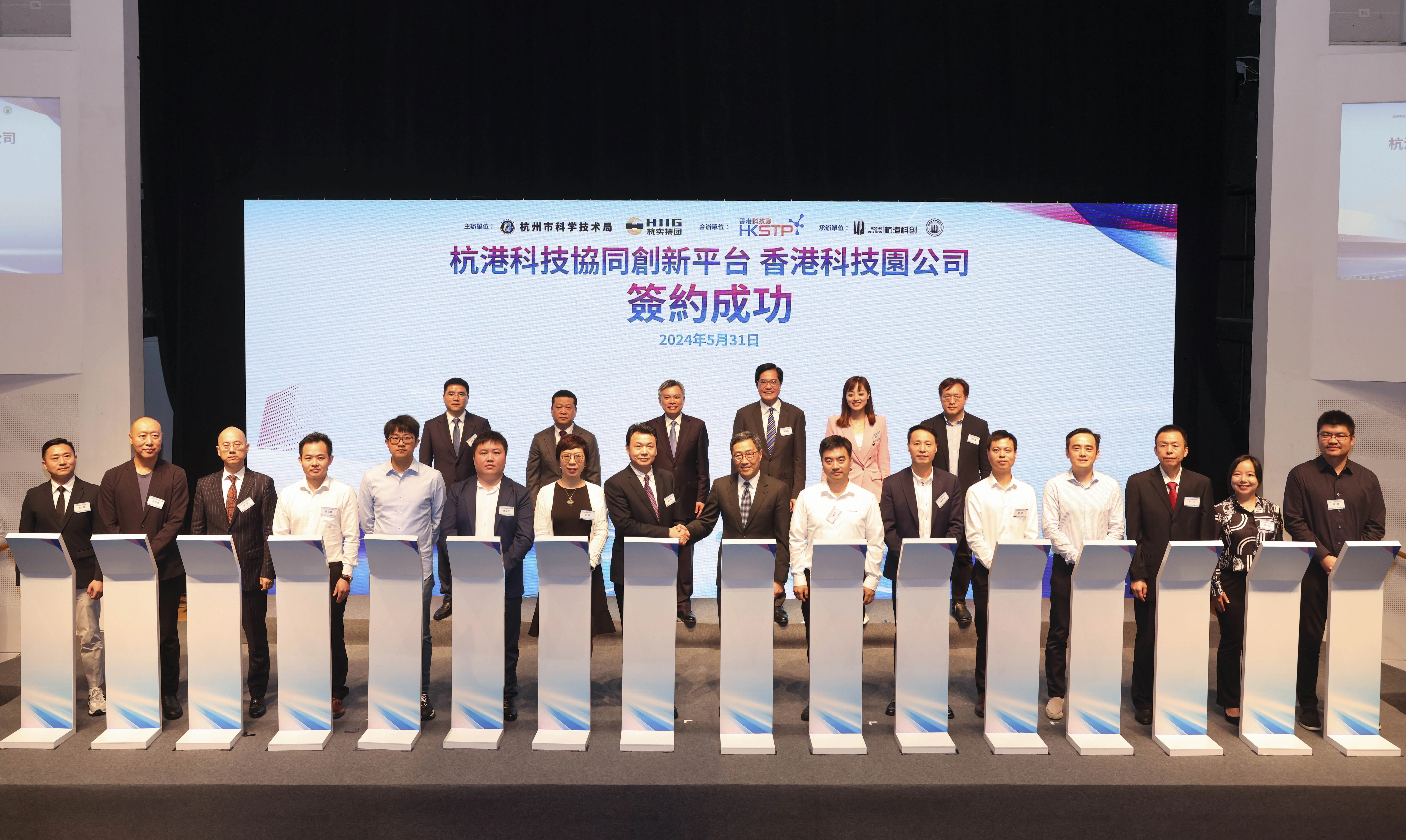 2024年5月31日,MK(中国)一站式服务官网党委书记、董事长钮健代表杭州创新孵化中心(香港)有限公司与香港科技园公司行政总裁黄克强签署联合孵化协议,并与 14家杭州科创企业签署入园发展合作备忘录。